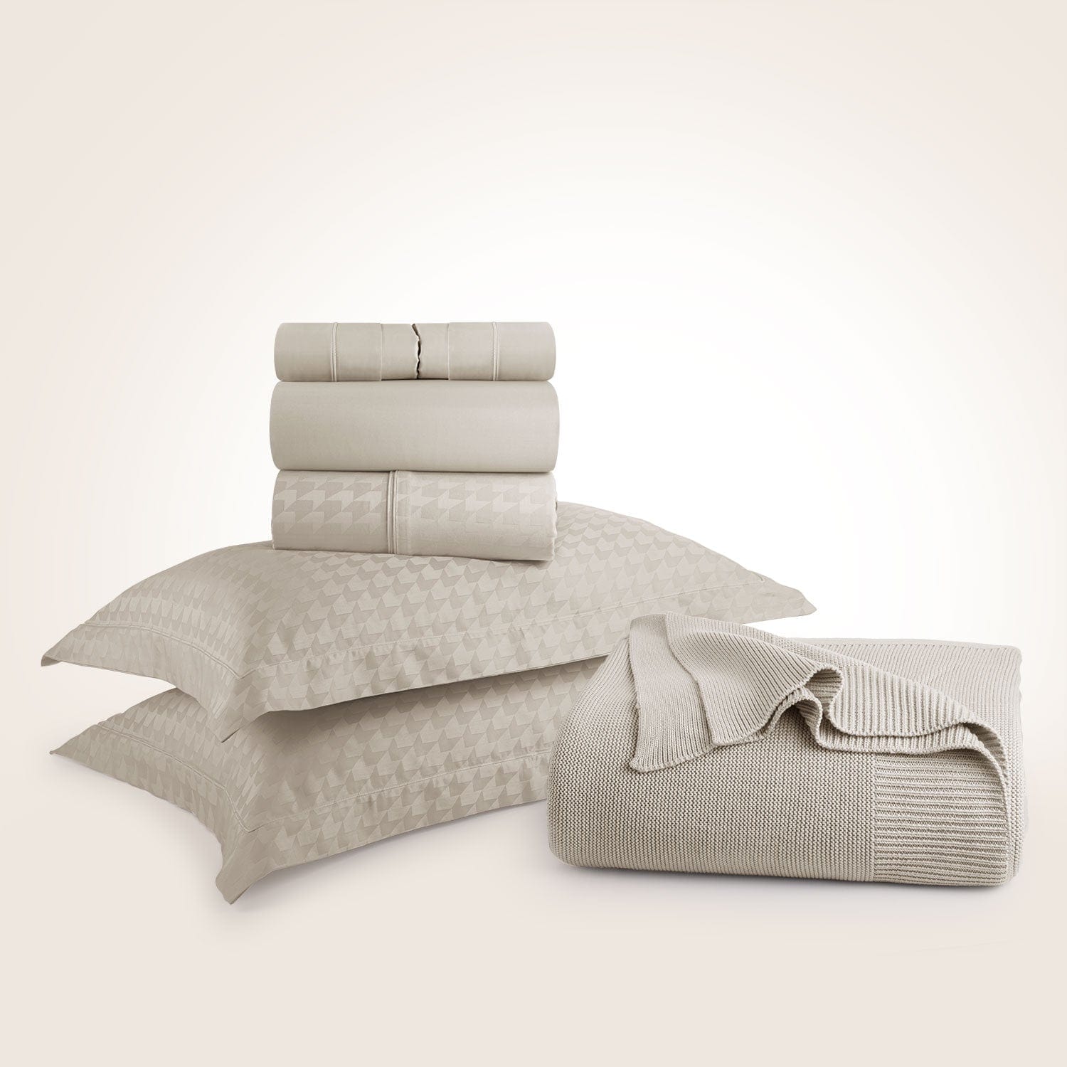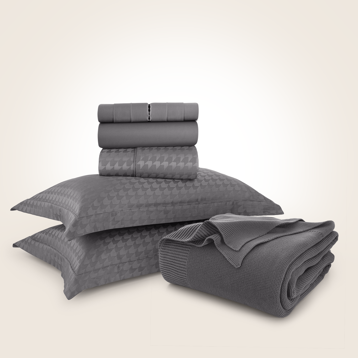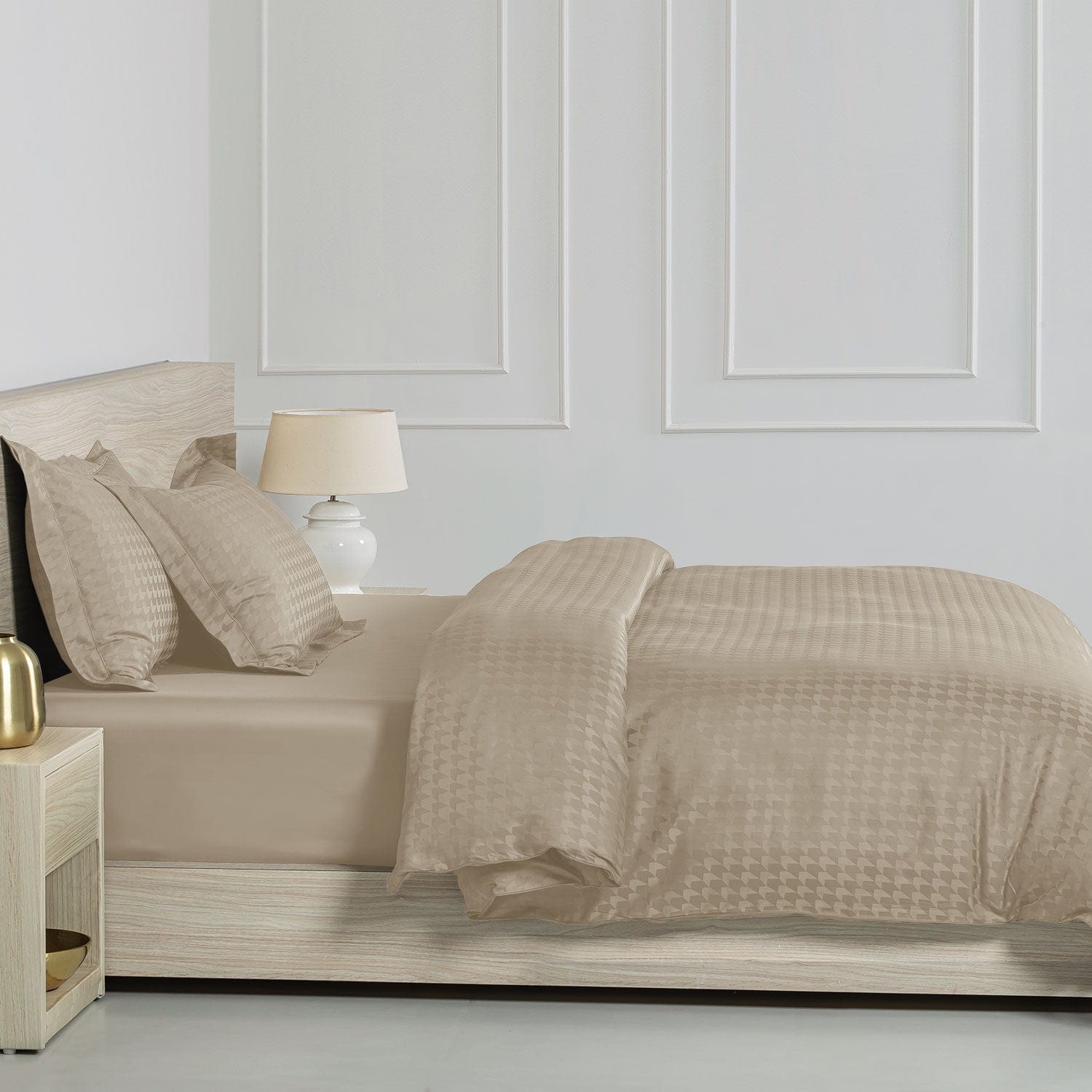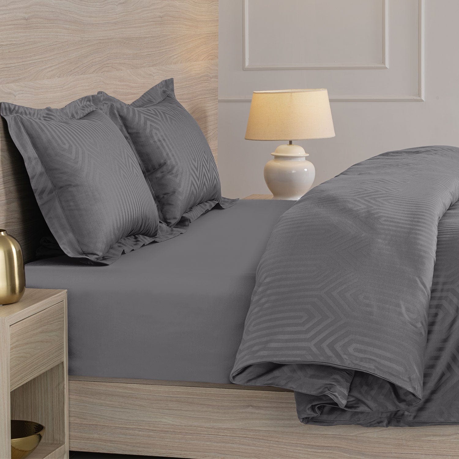Experience the luxury of our 550 TC Italian Jacquard Premium Bedding Set. Prep reared with precision, the 550 Thread Count and intricate jacquard patterns add a touch of sophistication to your bedroom decor. Promising a restful night's sleep wrapped in understated opulence.