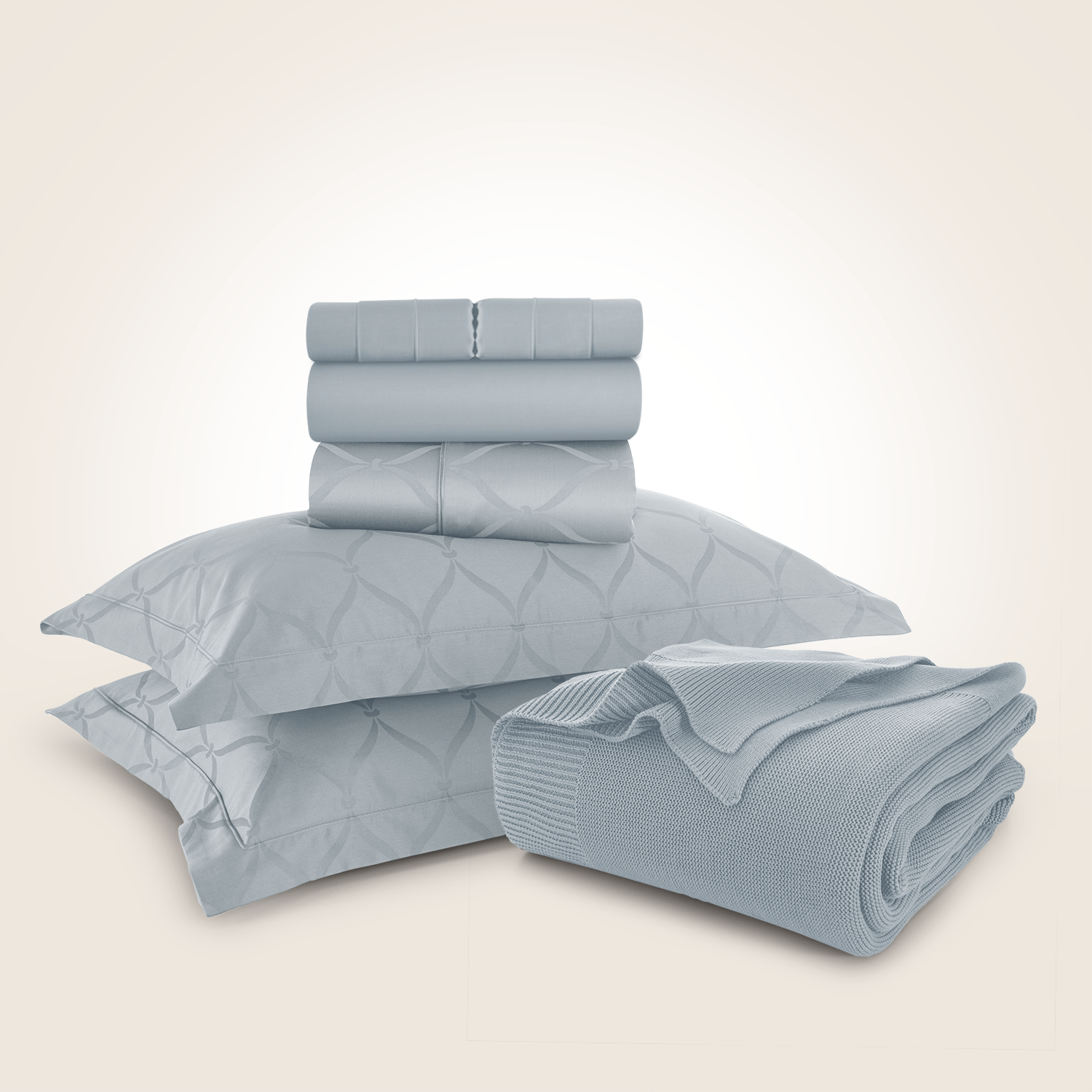 550 Tc Italian Jacquard 100% Cotton 7 Pcs Bedding Set