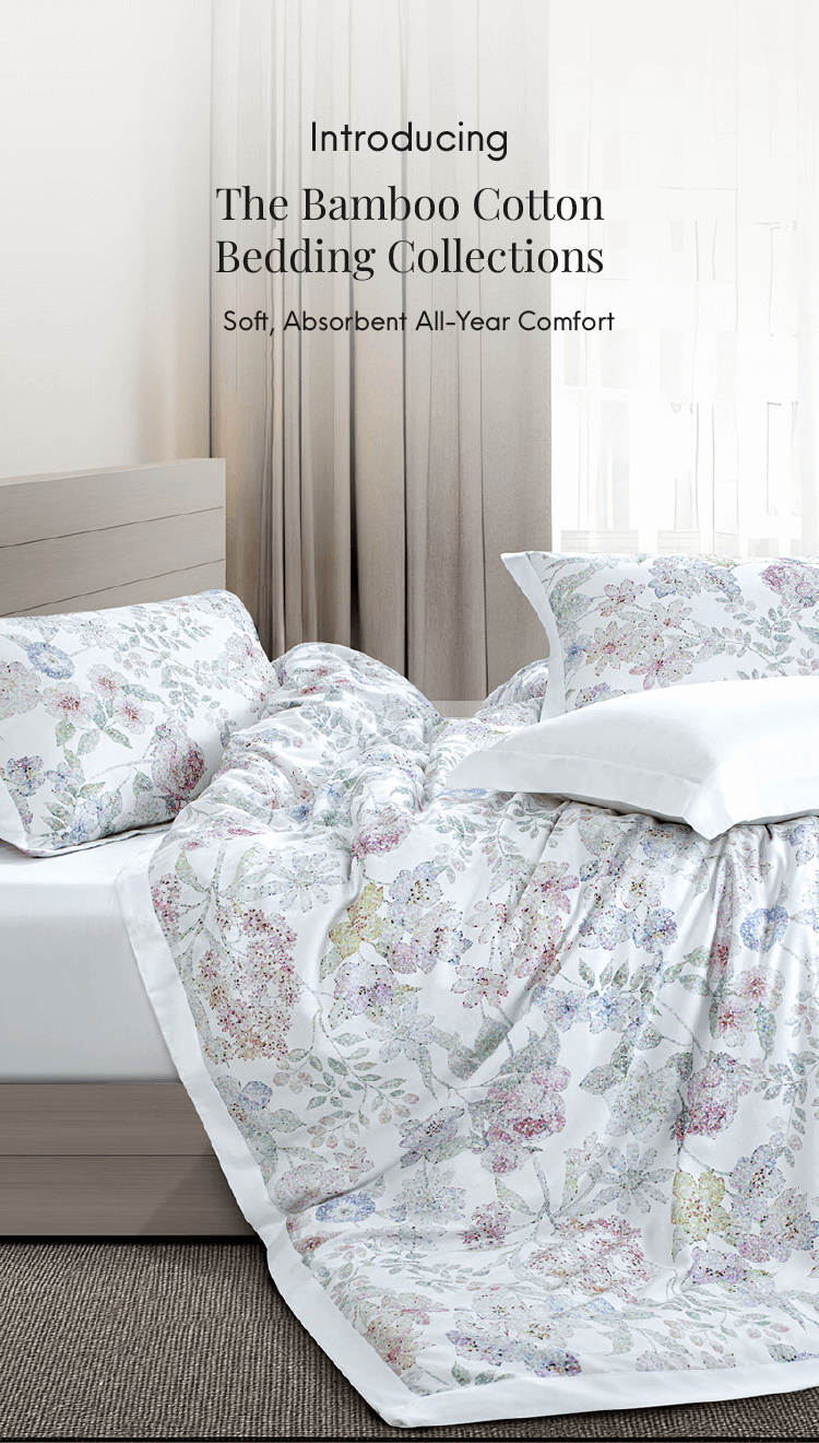 Discover the perfect harmony of bamboo and cotton in our premium bedding collection—a thoughtful blend of two skin-friendly yarns renowned for their exceptional moisture-wicking properties. Naturally soft and luxuriously adaptable, this duo gently conforms to your body, delivering breathable comfort that feels like a second skin. Elevate your sleep experience year-round with this innovative new range, designed for ultimate relaxation in every season.