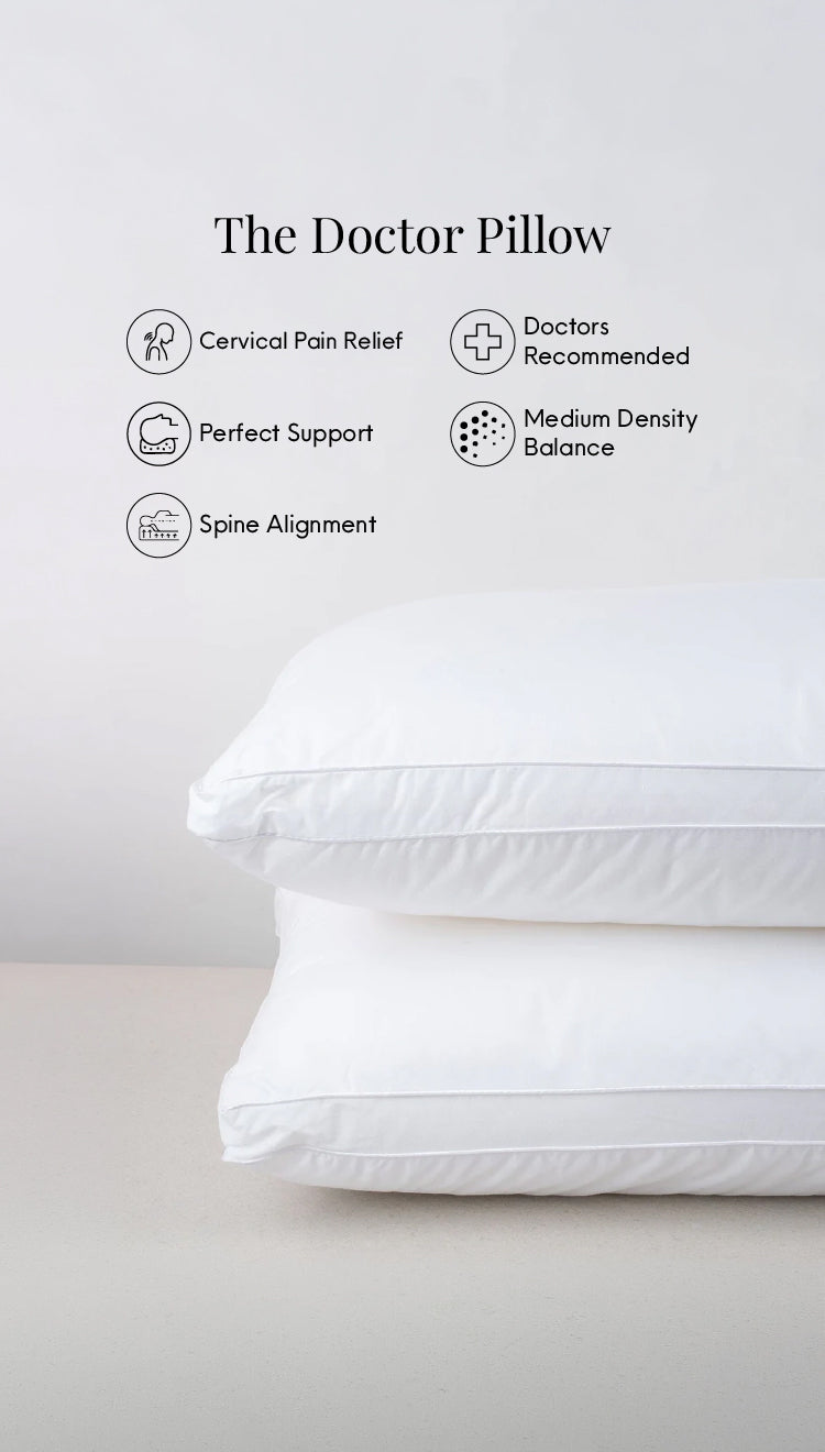 WAKE UP WITHOUT PAIN.Most pillows ignore your spine. The Doctor Pillow was built around it. Medically researched and physiotherapist-recommended, it holds your neck in natural alignment all night — so you wake up feeling like you actually slept.
