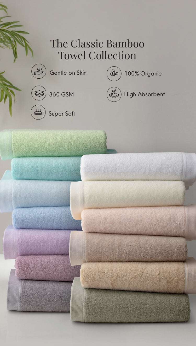 These unique bamboo towels are crafted from premium hand-picked bamboo and cotton yarn, designed specifically for sensitive skin. They offer a soft, gentle touch and quick absorption.