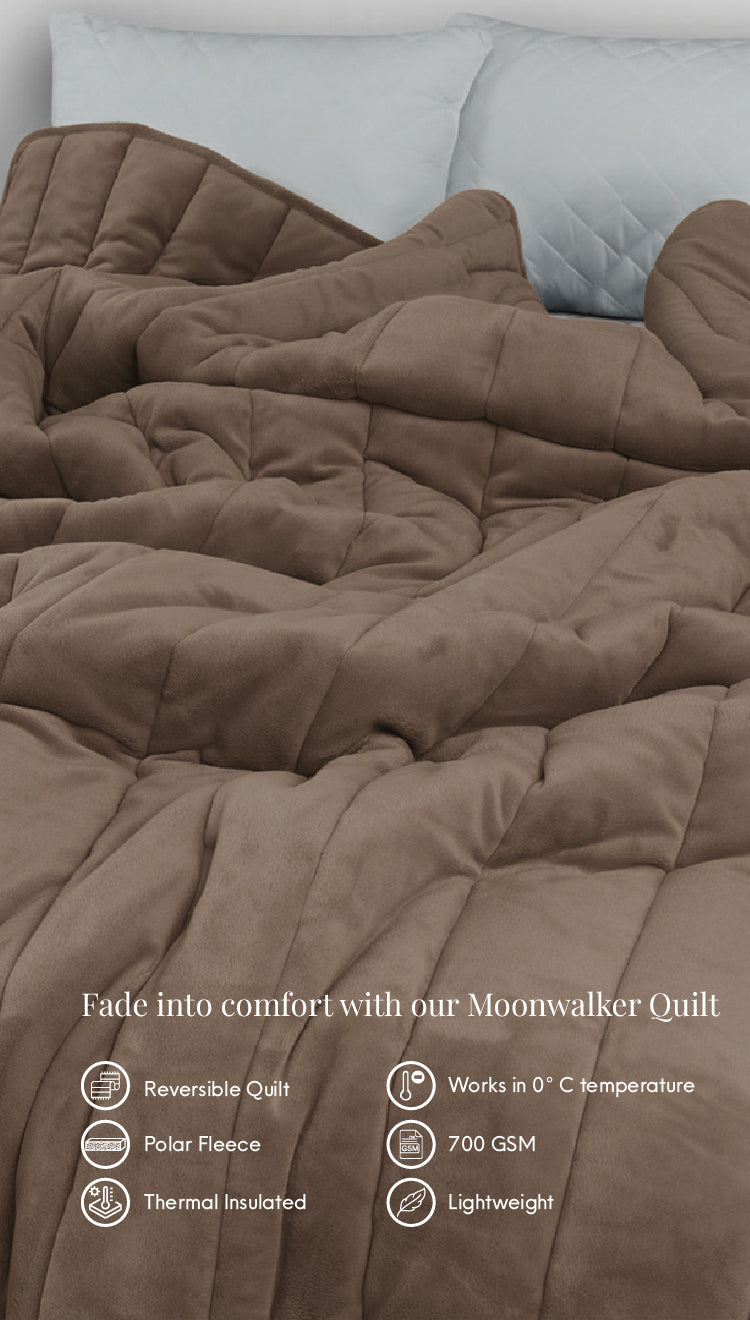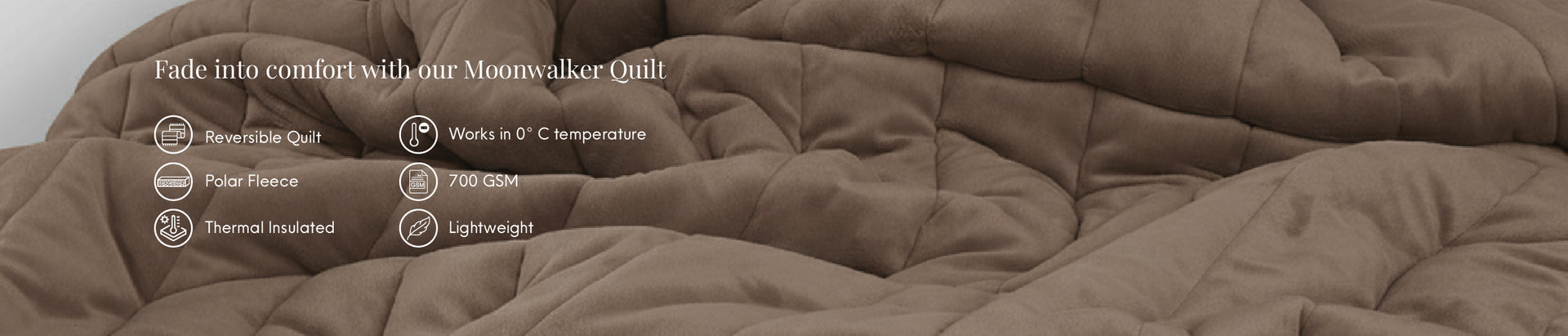 Stay cozy even in extreme winters, with warmth that lasts through temperatures up to 0°C. The Moonwalker Quilt is crafted with ultra-soft, reversible Arctic polar fleece and a dense 700 GSM thermal insulation for superior heat retention. Sized to hug you right, it offers uninterrupted warmth—no tugging, no cold spots. Ready to use straight out of the pack, there’s no need for a quilt cover. Available in seven elegant colors, the Moonwalker Quilt blends comfort, style, and winter-ready protection in perfect measure.