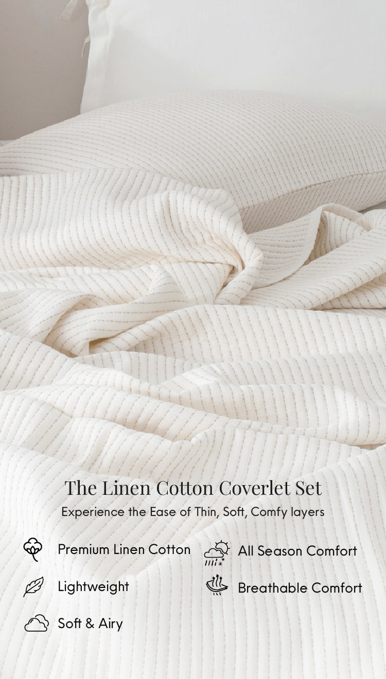 Linen Cotton Quilted Bed Spread Set – Lightweight All-Season Comfort
